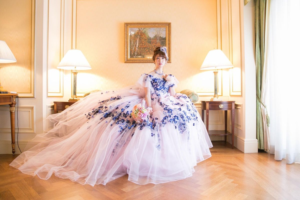 シンデレラみたい 桂由美のお花のカラードレスが可愛すぎ ウェディングドレス ピンク カラードレス 桂由美 ウェディングドレス かわいい