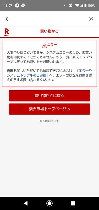 楽天市場 アプリやスマホのお買い物かごで 不正な入力 エラーが出る