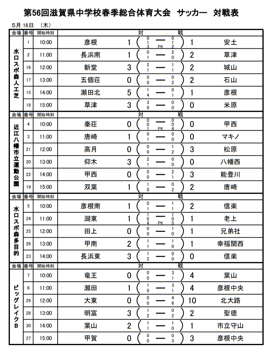 春季総体1日目結果 滋賀県中体連サッカー専門部