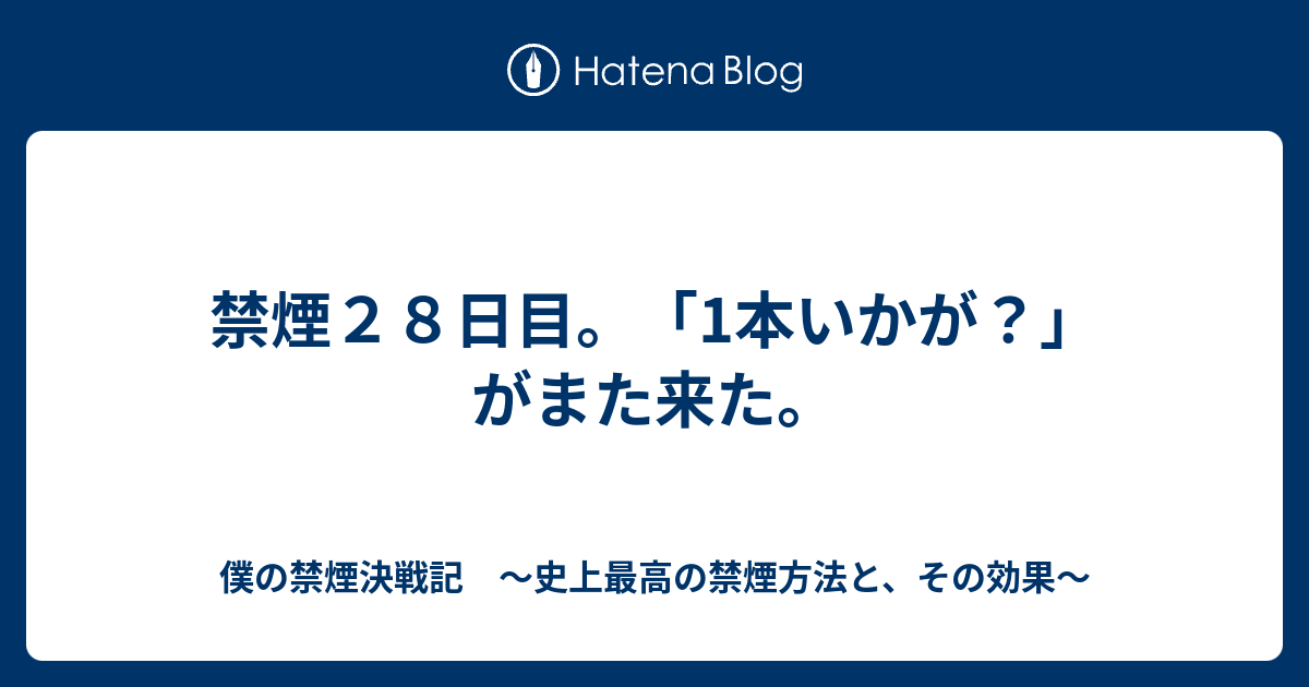 禁煙28日目 1本いかが がまた来た 僕の禁煙決戦記 史上最高の禁煙方法と その効果