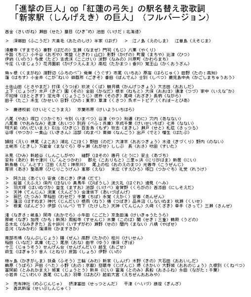 進撃の巨人 Op 紅蓮の弓矢 の駅名替え歌歌詞 フルバージョン 栃木那須 初代 さんのイラスト ニコニコ静画 イラスト
