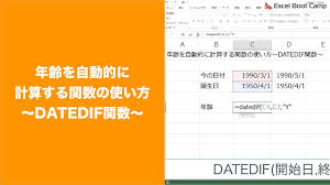 年齢を自動的に計算する関数の使い方 Datedif関数 エクセル使い方基本講座 Youtube