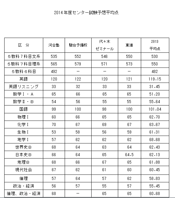 2014センター試験平均点 鹿児島県高校入試 高校教育を考えてみよう
