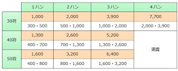 簡単点数計算早見表 符計算無しの初心者向け 麻雀点数計算